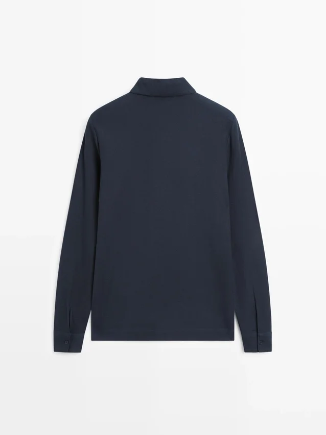Strukturiertes Piqué-Poloshirt mit langen Ärmeln