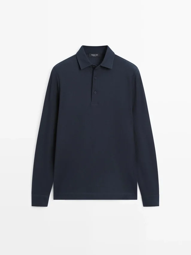 Poloshirts aus 100 % Baumwolle. Lange Ärmel mit geknöpften Manschetten. Piqué-Stoff. Button-Down-Kragen.