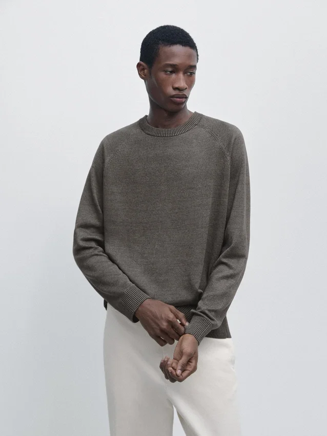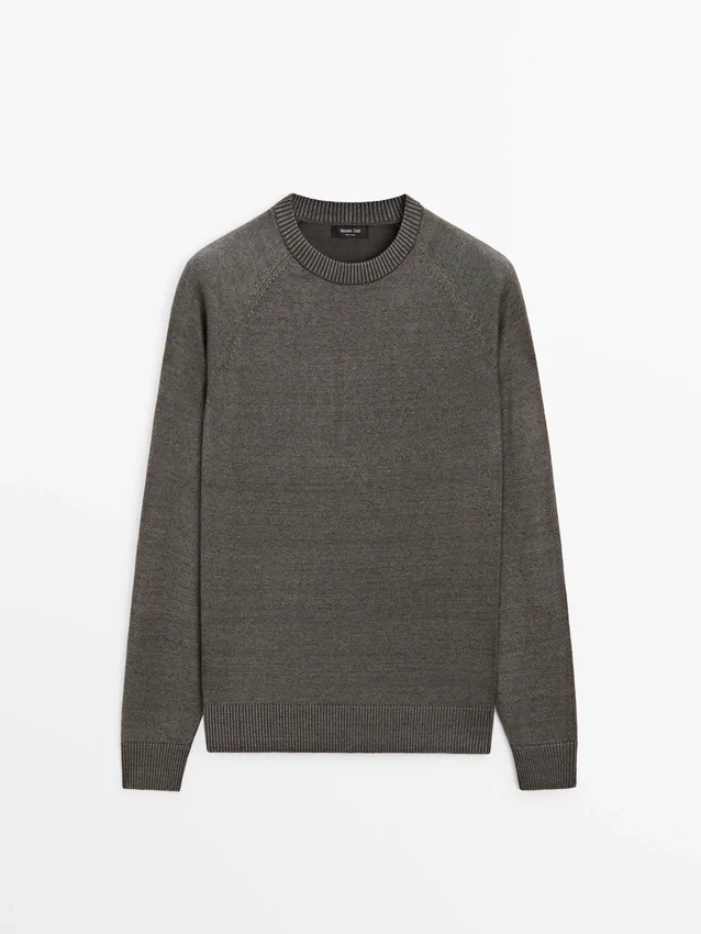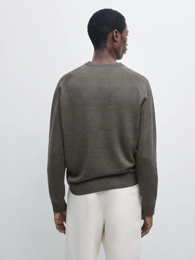 Pullover aus Leinenmischgewebe. Rundhalsausschnitt. Lange Ärmel. Gerippte Bündchen.