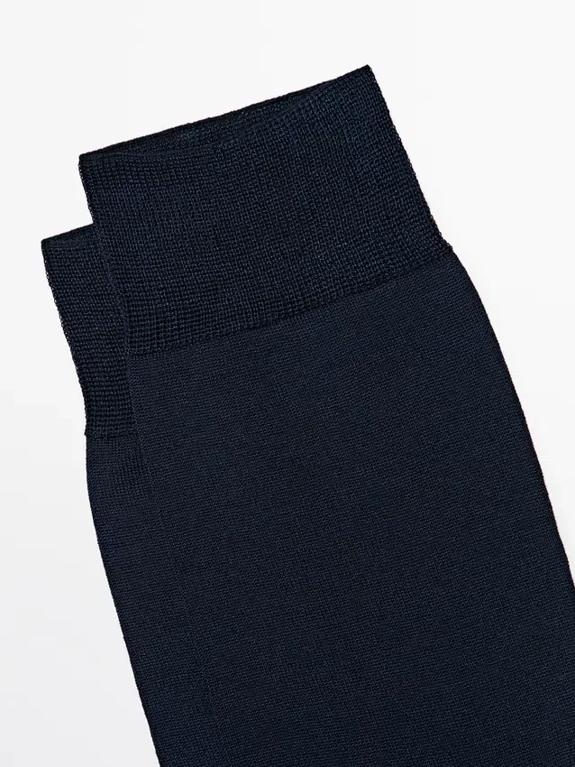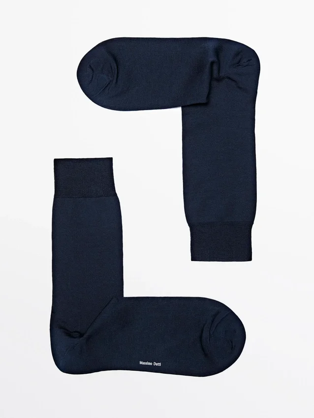 Socken aus Baumwollmischgewebe. Scottish Yarn: Ein Garn, das nach einer speziellen Behandlung der Baumwolle entsteht, um ein äußerst widerstandsfähiges Produkt mit seidigem, glänzendem Finish zu erhalten.