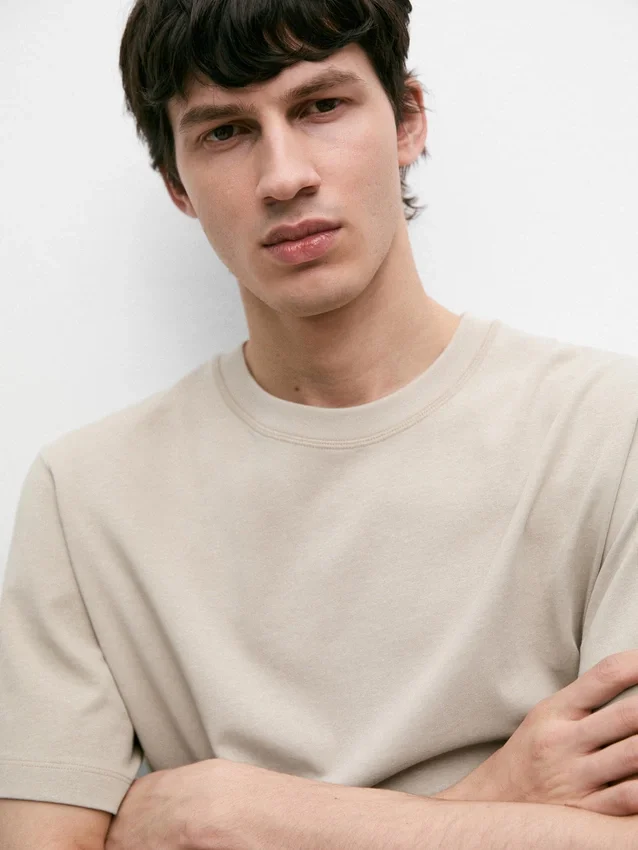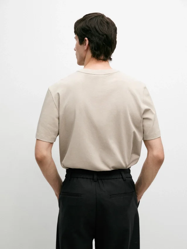 T-Shirt aus Baumwollmischung. Rundhalsausschnitt. Kurze Ärmel.