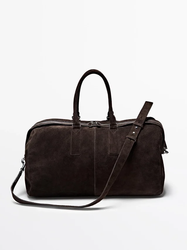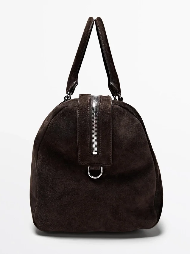 Handtasche aus Rindsleder mit Wildleder-Finish. Verstellbarer und abnehmbarer Schulterriemen. Mit Zwei-Wege-Reißverschluss. Handgelenkriemen. Innentasche mit Reißverschluss. Baumwollfutter.